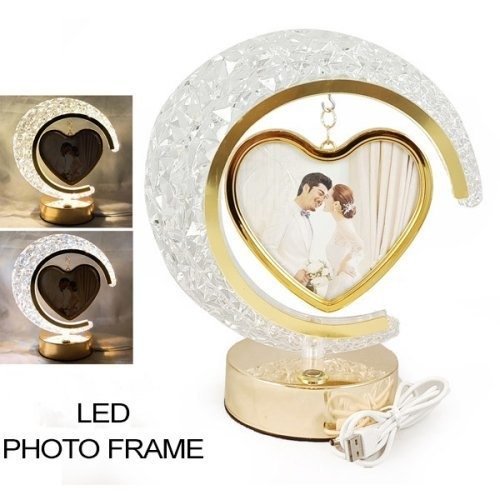 Gift this beautiful Crystal Half Moon Hanging LED Heart Shape Photo Frame. This High Definition crystal photo frame is a precious and perfect gift for anyone close to your heart. It can be personalized with your own photos.