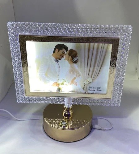 Gift this beautiful Crystal Half Moon Hanging LED Heart Shape Photo Frame. This High Definition crystal photo frame is a precious and perfect gift for anyone close to your heart. It can be personalized with your own photos.
