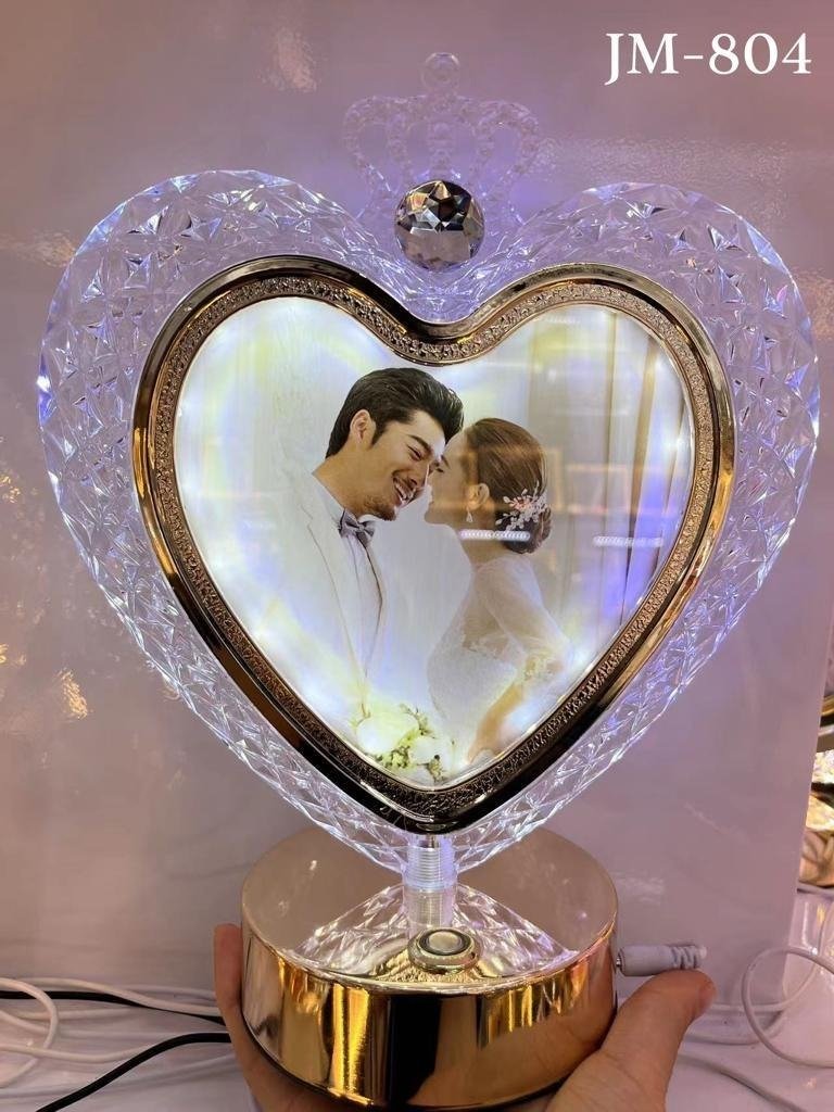 Gift this beautiful Crystal Half Moon Hanging LED Heart Shape Photo Frame. This High Definition crystal photo frame is a precious and perfect gift for anyone close to your heart. It can be personalized with your own photos.