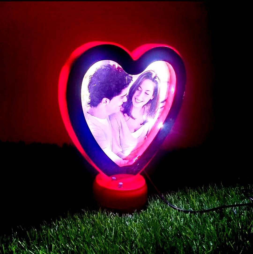 This Red Heart Magic Mirror is a special LED fitted magic mirror heart photo frame. The frame appears like a mirror in normal condition but the photo inside appears magically when you switch it on. The LED lights lit up and the picture inserted inside appears.